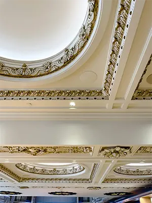 استفاده از طرحهای گلدار و نقوش اسلیمی و گچبریهای سنتی نیز، یکی از گزینههای موجود برای طراحی سقفهای گچی است که معمولا برای فضاهای کلاسیک و مجلل نظیر لابی هتلها و ساختمانها و همچنین سالنهای عروسی مورد استفاده قرار میگیرند.