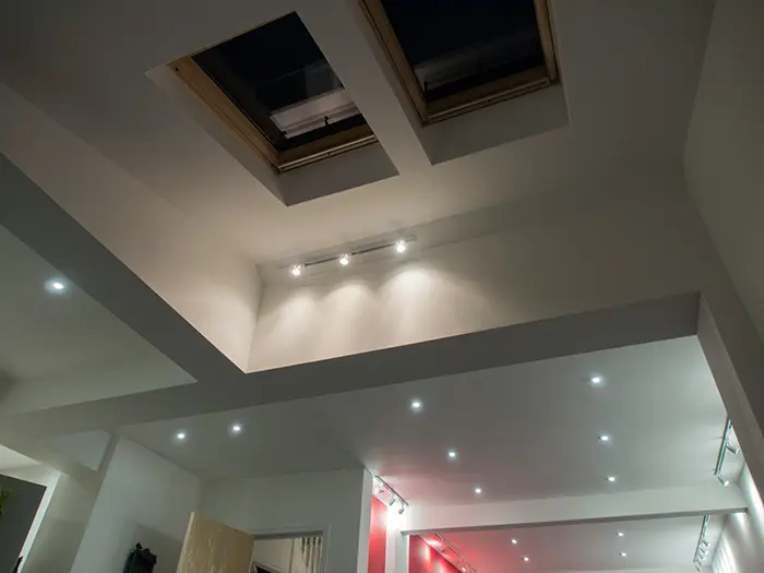 گچ کاری حرفهای سقف باعث میشود که فضای داخلی منظم، مدرن و پاکیزه به نظر برسد و نور به شکل بهینه در فضا پخش شود.